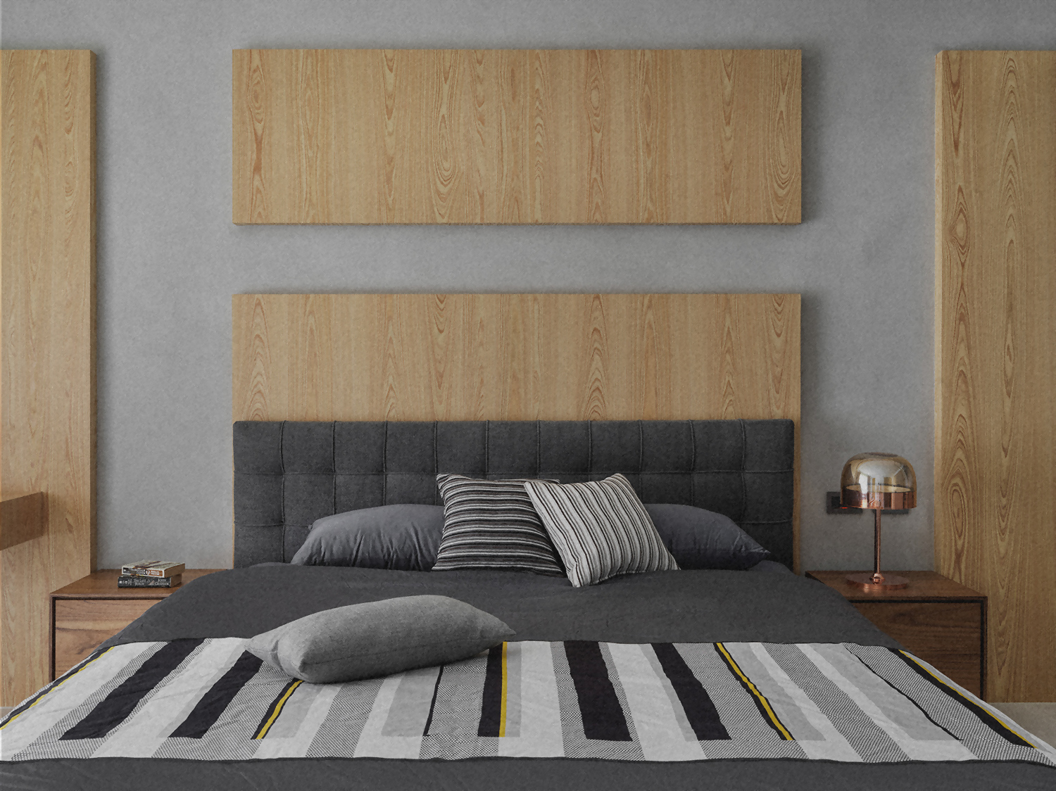 簡約風格講求的是一種乾淨與平和的氛圍,利用白色作為空間的基底,Black Pearl(類)做局部的變化,色彩區隔出使用區域,木紋色扮演之間的連接,讓視覺延伸有著平衡及舒適感,並偏向溫暖、溫馨的感受。